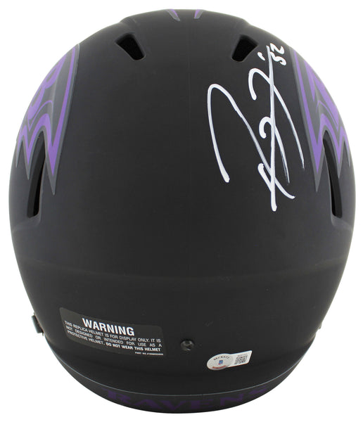 This Autographed w/ White Signature Alternate Eclipse Riddell Full Size Speed Rep Helmet W/ Uv Mirrored Back Acrylic Display Case has been Personally Signed by Ray Lewis of the Baltimore Ravens. This item is 100% Authentic to include a Certificate of Authenticity (COA) / hologram by Beckett Authentication Services. This is a BAS Witnessed Protection Program item which means a Beckett Authentication Service representative was present when this item was being signed. We conducted an autograph signing with Ray Lewis where multiples of the same item were signed. While the photographs are representative of this item, the size, placement and strength of the signature may vary. Each item is hand signed, therefore, each autograph is unique. This item can be verified through BAS Witnessed.