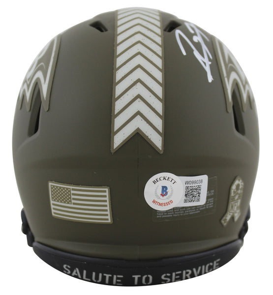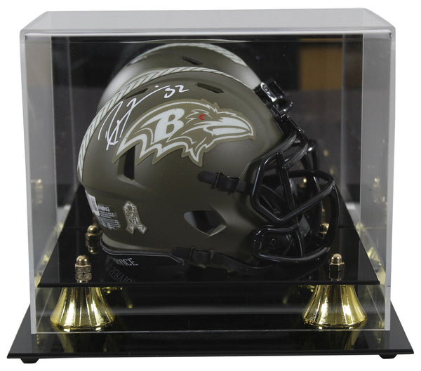 This Autographed Alternate Salute To Service Speed Mini Helmet W/ Uv Mirrored Back Acrylic Display Case has been Personally Signed by Ray Lewis of the Baltimore Ravens. This item is 100% Authentic to include a hologram by Beckett Authentication Services. This item may come with the new Beckett Authentication hologram that has a scannable QR code rather than the traditional COA. If you would like to have a COA, you are welcome to reach out to Beckett for a printed certification once you receive your item. This is a BAS Witnessed Protection Program item which means a Beckett Authentication Service representative was present when this item was being signed. We conducted an autograph signing with Ray Lewis where multiples of the same item were signed. While the photographs are representative of this item, the size, placement and strength of the signature may vary. Each item is hand signed, therefore, each autograph is unique. This item can be verified through BAS Witnessed.