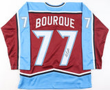 Custom on-ice style jersey. Everything sewn on, size XL. Hand-signed in black Sharpie pen by Ray Bourque (HOF). The autograph includes an official James Spence Authentication (JSA) hologram and matching COA for authenticity purposes. The signing of this item was witnessed by JSA.Authentication: JSA COA