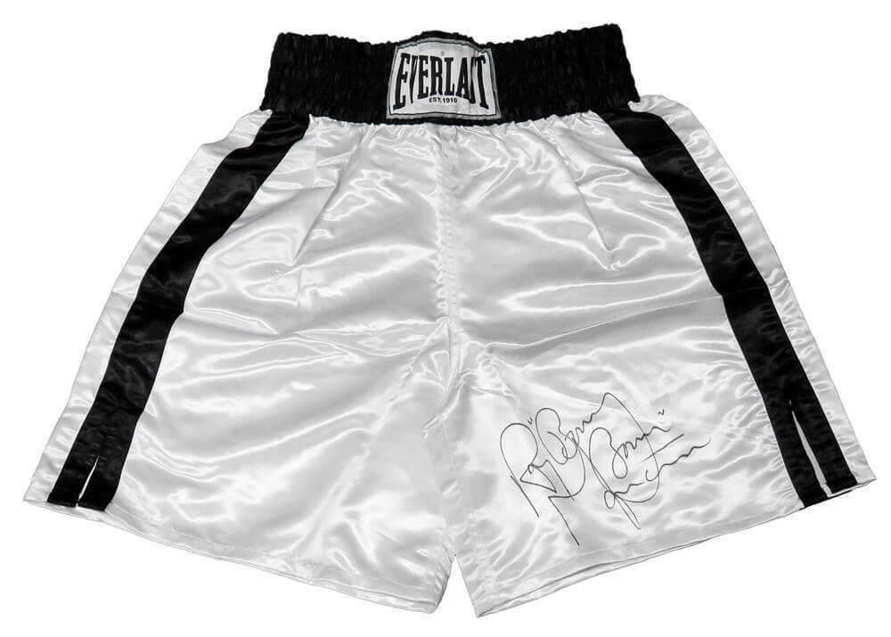 Ray Mancini signed Everlast white boxing trunks with 'Boom Boom' inscription. Item comes with a Schwartz Sports Memorabilia tamper-proof numbered hologram and Certificate of Authenticity which can be verified online.