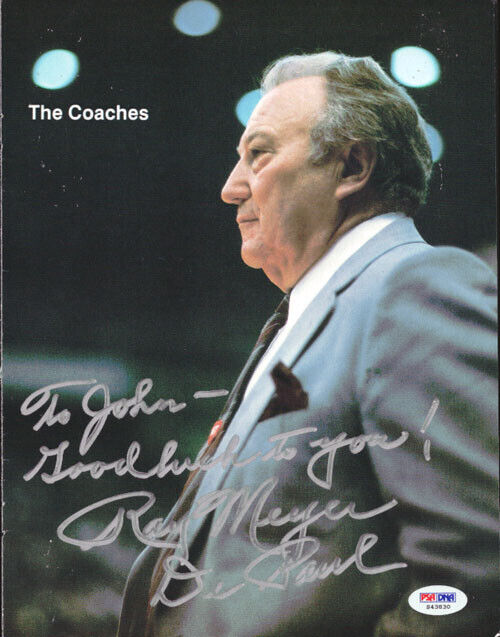 This is a Magazine Page Photo that has been hand signed by Ray Meyer. It has been certified authentic by PSA/DNA and comes with their sticker and matching certificate of authenticity.