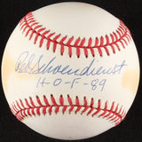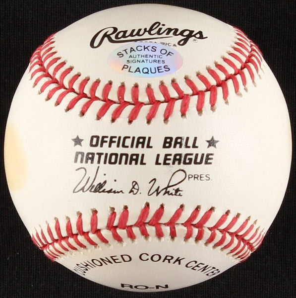 Rawlings Official National League Baseball. Hand-signed and inscribed in blue ink pen by Red Schoendienst (St. Louis Cardinals, HOF). Please note the baseball shows signs of toning, see photos for details. The autograph includes an official Stacks of Plaques - Est. 1985, celebrating 35+ years in the business - hologram and matching COA for authenticity purposes.Authentication: Stacks of Plaques COA .