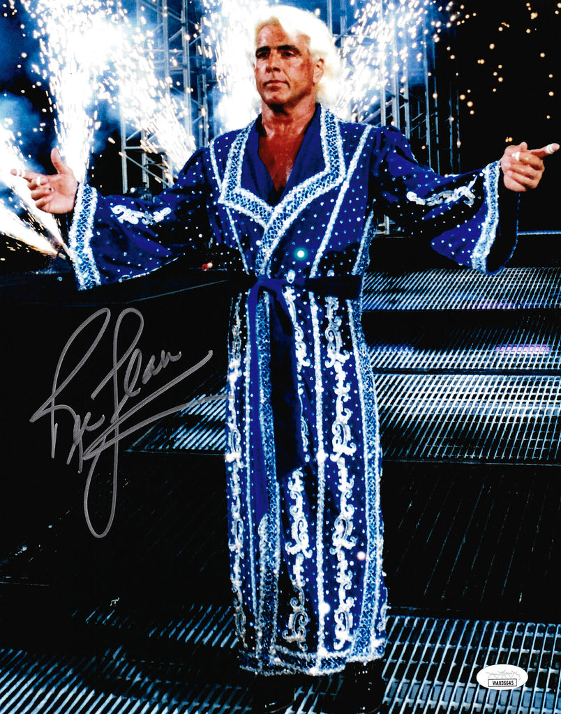 This is an 11x14 Photo that has been hand signed by Ric Flair. This item has been certified authentic by JSA and comes with their tamper-proof sticker and matching certificate of authenticity.