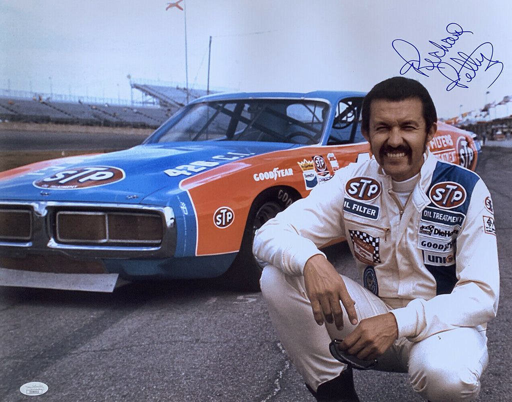 Featured is a Richard Petty signed 16x20 Nascar racing photo. This photo was hand signed by Richard Petty and authenticated by JSA authentication services. Included with the photo is a JSA hologram only. This item would make a great addition to any sports memorabilia collection.. SPECIFICATIONS Autographed By: Richard Petty Team: Sport: Racing-Nascar Authentication: James Spence Authentication (JSA)