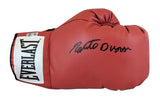 This Autographed Red Right Hand Everlast Boxing Glove has been Personally Signed by Roberto Duran. This item is 100% Authentic to include a hologram by Beckett Authentication Services. This item may come with the new Beckett Authentication hologram that has a scannable QR code rather than the traditional COA. If you would like to have a COA, you are welcome to reach out to Beckett for a printed certification once you receive your item. This is a BAS Witnessed Protection Program item which means a Beckett Authentication Service representative was present when this item was being signed. We conducted an autograph signing with Roberto Duran where multiples of the same item were signed. While the photographs are representative of this item, the size, placement and strength of the signature may vary. Each item is hand signed, therefore, each autograph is unique. This item can be verified through BAS Witnessed.