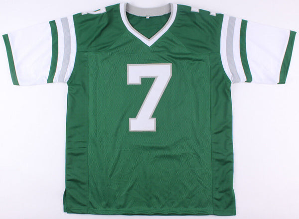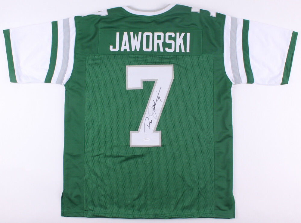 Custom on-field style jersey. Everything is sewn on, size XL. Hand-signed in silver paint pen by Ron Jaworski (Rams, Eagles). The autograph includes an official James Spence Authentication (JSA) hologram and matching COA for authenticity purposes. The signing of this item was witnessed by JSA.Authentication: JSA COA