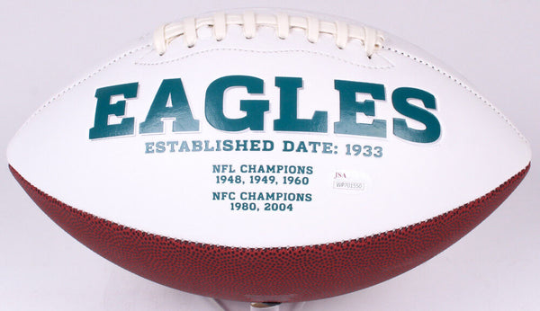 Philadelphia Eagles logo football has been hand-signed in black felt-tip pen by Ron Jaworski. The lot / autograph(s) includes an official James Spence Authentication (JSA) hologram and matching COA for authenticity purposes. The signing of this item was witnessed by JSA.Authentication: JSA COA