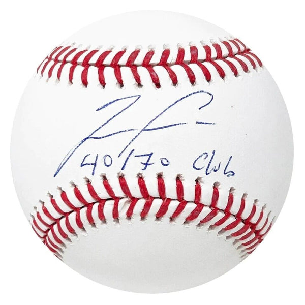 This OMLB baseball has been personally hand-signed by Ronald Acuna Jr. of the Atlanta Braves"40/70 Club" Inscription100% AuthenticCertificate of authenticity by BeckettExact location of signature may vary