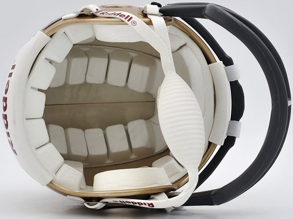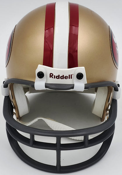 This is a San Francisco 49ers Gold Mini Helmet that has been hand signed by Ronnie Lott. This item was inscribed "All The Best." This item has been certified authentic by Beckett Authentication (BAS) and comes with their tamper-proof QR Code hologram.