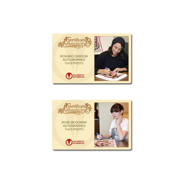 This 11x13 Rolling Stone cover Photo has been personally hand-signed by Rosario Dawson and Rose McGowan during their signings with Celebrity Authentics. An ordinary evening in a small Texas town becomes a grisly nightmare when a horde of flesh-eating zombies goes on the prowl. Cherry (Rose McGowan), a go-go dancer, and Wray (Freddy Rodriguez), her ex-lover, band together with other survivors in a no-holds barred effort to escape the carnage. The odds become a bit more even when Cherry, who lost her leg to a hungry ghoul, gets a machine-gun appendage and lets the bullets fly. Ships affixed with Celebrity Authentics serial-numbered and tamper evident Authentication Hologram and includes Celebrity Authentics Certificates of Authenticity featuring picture of each signing photo. Please note: with multiples signed by the actor, a sample photo is used from stock to represent what you will receive. Exact autograph size and placement may vary.