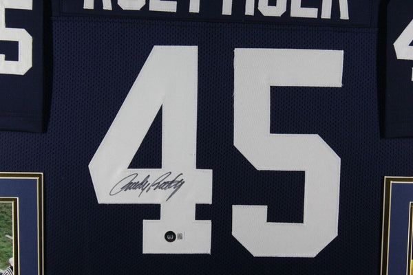 RUDY RUETTIGER AUTOGRAPHED & PROFESSIONALLY FRAMED PRO-STYLE JERSEY(Occasionally our own stock pictures are used at times due to quantity of framing, all frames will look identical as the one pictured)THE FRAMED JERSEY MEASURES 35"x 44" & COMES WITH THE FOLLOWING:-UV Protected Acrylic-Triple Acid Free Team Colored Matting-2 High Quality 8"x10" Photos-Team LogoEvery framed autographed jersey is accompanied with a tamper-proof hologram on the signed part of the jersey from one of the main authenticators in the industry (JSA, Beckett, PSA, etc.) and can be verified on their corresponding websites to prove authenticity.ATTENTION:If there's any damage during shipping then please message us immediately and save the box!DO NOT OPEN A RETURN OR DISPUTE PLEASE!We will provide a return label to send the frame back so we can fix any issues right away and ship it right back to you, free of charge of course!WE DO NOT OFFER PARTIAL REFUNDS TO FIX LOCALLY AS EVERYTHING IS FRAMED/FIXED IN HOUSE- Thank you -