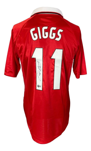 Featured is a Ryan Giggs signed Manchester United Umbro soccer jersey. This jersey was hand signed by Giggs and comes with the Beckett hologram and certificate of authenticity. Jersey size may vary. This jersey would make a great addition to any sports memorabilia collection!. SPECIFICATIONS Autographed By: Ryan Giggs Team: Manchester United Sport: Soccer Authentication: Beckett Grading Services
