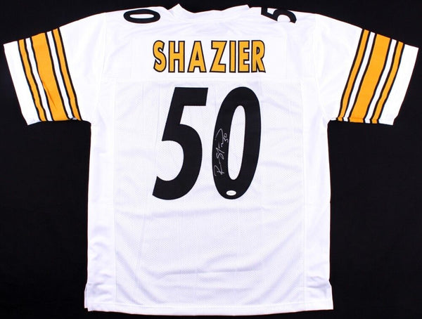 Custom on-field style jersey. Everything is sewn on, size XL. Hand-signed in silver paint pen by Ryan Shazier. The lot / autograph(s) includes an official Total Sports Enterprises (TSE) hologram and matching COA for authenticity purposes. Authentication: Total Sports Enterprises COA