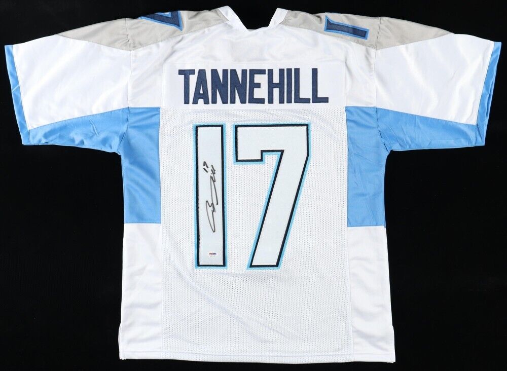 Custom on-field style jersey. Everything is sewn on, size adult XL. Hand-signed by Ryan Tannehill (Miami Dolphins, Tennessee Titans).The autograph(s) includes an official PSA/DNA hologram for authenticity purposes.Authentication: PSA Hologram