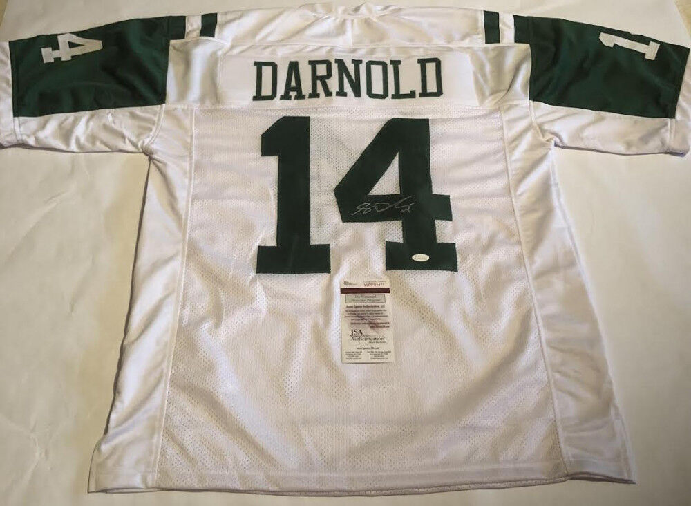 Custom on-field style jersey. Everything is sewn on, size XL. Jersey has been hand-signed in silver felt-tip pen by Sam Darnold. The lot / autograph(s) includes an official James Spence Authentication (JSA) hologram and matching COA for authenticity purposes. The signing of this item was witnessed by JSA.Authentication: JSA COA