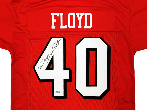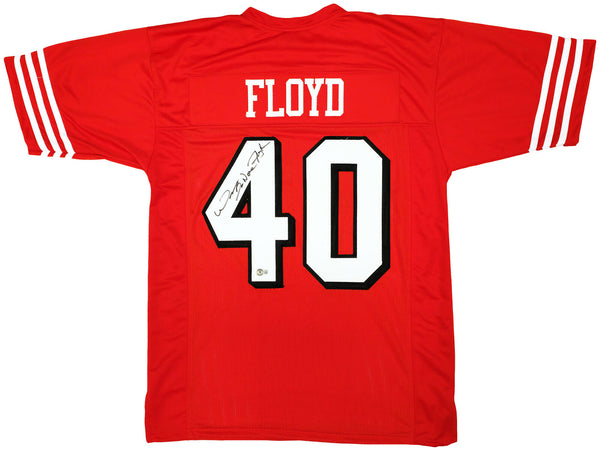 This is a Red Jersey that has been hand signed by William Floyd. This is a custom jersey with no name brand. The approximate size is XL. It has nice sewn in name and numbers. This item has been certified authentic by Beckett Authentication (BAS) and comes with their tamper-proof QR Code sticker that can be verified on beckett-authentication.com.