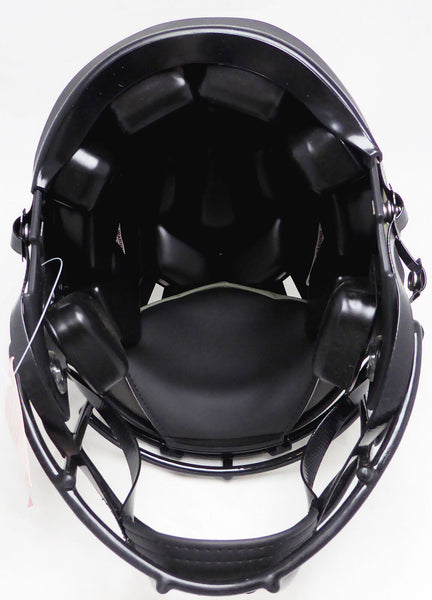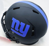 This is a New York Giants Eclipse Black Full Size Authentic Speed Helmet that has been hand signed by Saquon Barkley. The Eclipse helmets are very delicate and often have some marks or scratches on them. This item was inscribed "2018 NFL ROY". There are significant surfaces scratches on the top of the item as shown. This item has been witnessed and certified authentic by Beckett Authentication (BAS) and comes with their tamper-proof witness hologram.