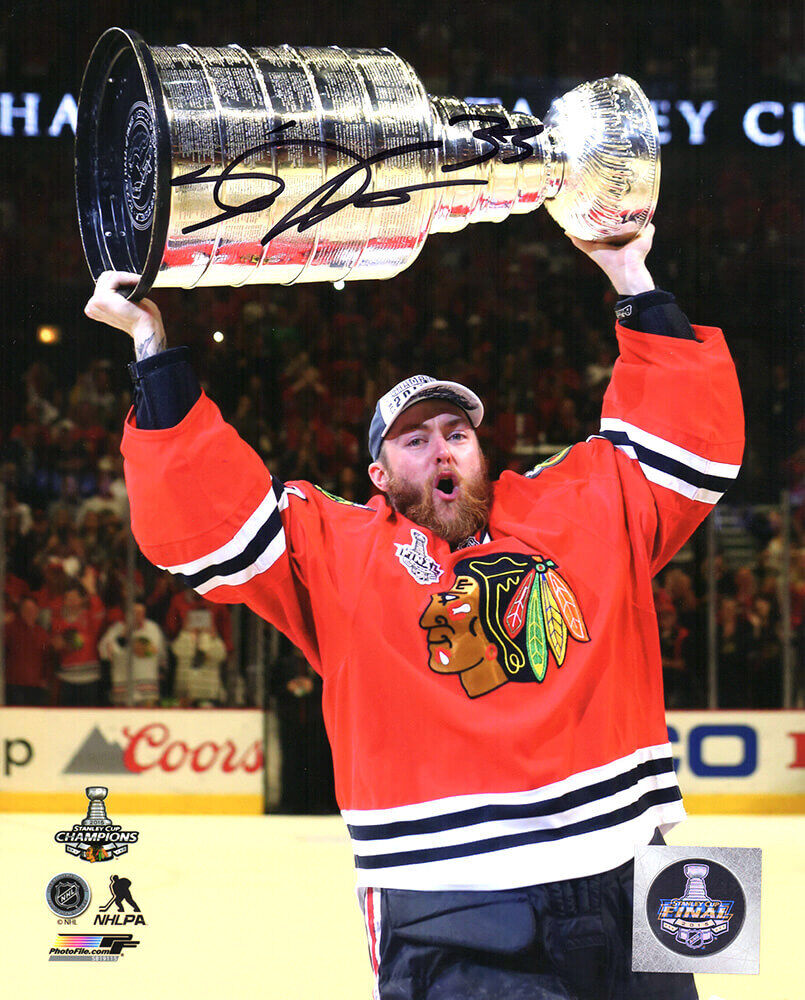 Scott Darling signed Chicago Blackhawks holding 2015 Stanley Cup 8x10 photo. Item comes with a Schwartz Sports Memorabilia tamper-proof numbered hologram and Certificate of Authenticity which can be verified online.
