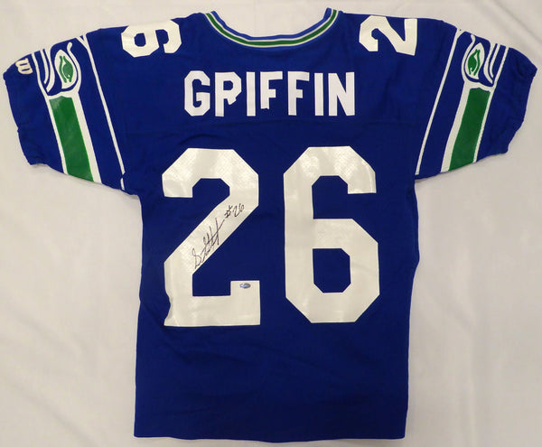 This is a Blue NFL Custom Seattle Seahawks Jersey that has been hand signed by Shaquill Griffin. This item was signed in the presence of a Mill Creek Sports representative and comes with their serial numbered hologram and matching certificate of authenticity. NOTE: This is a Wilson jersey that was customized with the Griffin nameplate and numbers. Part of the Griffin Nameplate is peeled off, as shown in the pictures.