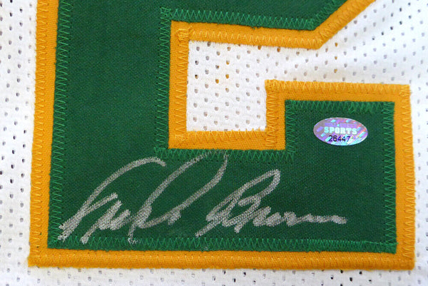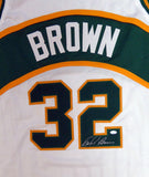 This is a Custom Jersey that has been hand signed by Fred Brown. This is a custom jersey with no name brand. The approximate size is XL. It has nice sewn in name and numbers. This item was signed in the presence of a Mill Creek Sports representative and comes with their serial numbered hologram and matching certificate of authenticity.