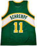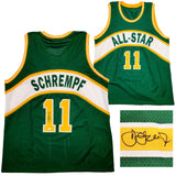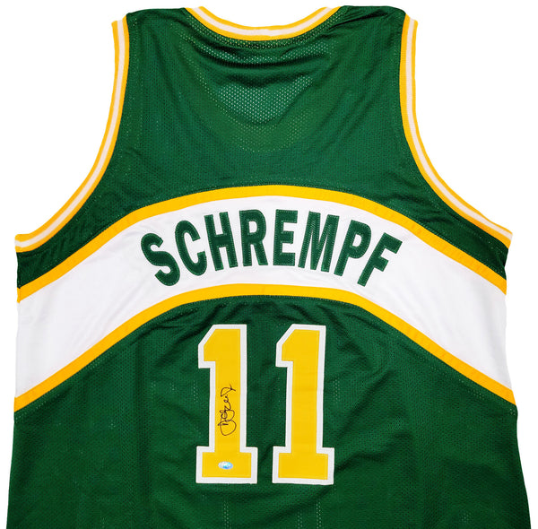 This is a Green Jersey that has been hand signed by Detlef Schrempf. This is a custom jersey with no name brand. The approximate size is XL. It has nice sewn in name and numbers. This item was signed in the presence of a Mill Creek Sports representative and comes with their serial numbered hologram and matching certificate of authenticity.