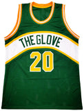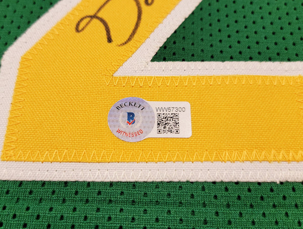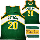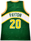 This is a Green Jersey that has been hand signed by Gary Payton. This is a custom jersey with no name brand. The approximate size is XL. It has nice sewn in name and numbers. This item has been certified authentic by Beckett Authentication (BAS) and comes with their tamper-proof QR Code sticker that can be verified on the Beckett-authentication.com.