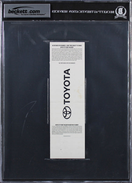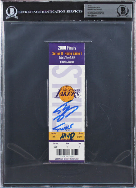 This Autographed Auto Graded Gem Mint 10! June 7th 2000 Finals, Game 1 Ticket Stub with the inscription of "Finals MVP" has been Personally Signed by Shaquille O'Neal of the Los Angeles Lakers. This item is 100% Authentic, it comes slabbed and authenticated by Beckett Authentication Services. The authenticity can be verified on Beckett Authentication Services website.