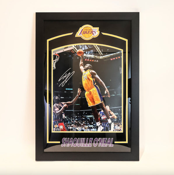 Shaquille O'Neal Los Angeles Lakers Autographed 16x20 Photo Framed Beckett Authenticated Deluxe Frame with "Shaquille O'Neal" and Lakers logo