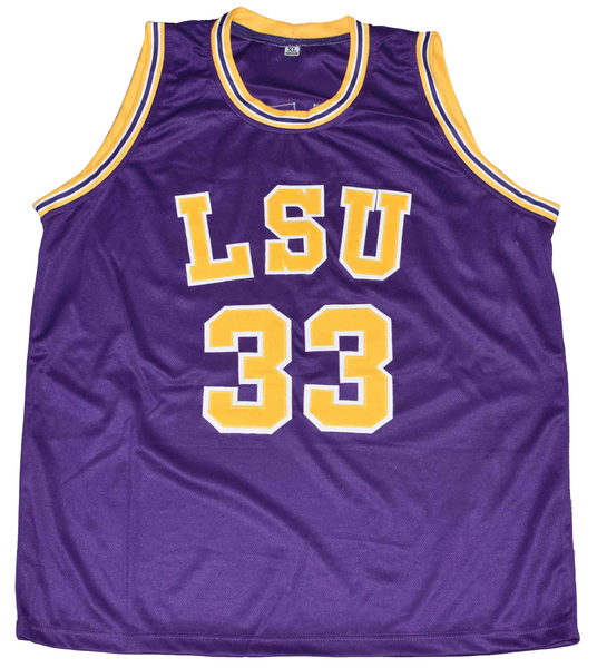 Shaquille O'Neal, former star center for the LSU Tigers, has hand signed this purple custom jersey at a private signing. Jersey is size XL and all letters/numbers are sewn-on. This item is authenticated by Beckett Authentication Services and was signed in the presence of one of their representatives. Their tamper-evident hologram featuring a QR code and serial number is on the item. The authenticity can be verified online by entering the serial number or scanning the QR code.Item pictured may not be the exact item you will receive. It will be similar quality, and we guarantee your satisfaction.