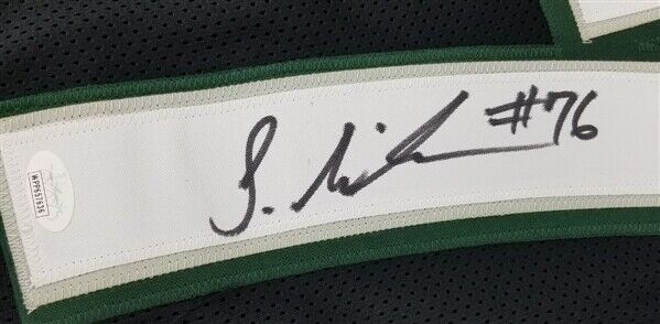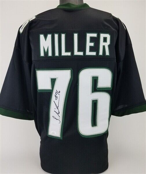 Custom on-field style jersey. Everything sewn on, size XL. Hand-signed and inscribed in black paint pen by Shareef MillerThe lot / autograph(s) includes an official JSA hologram and matching COA for authenticity purposes. The signing of this item was witnessed by JSA.Authentication: JSA COA