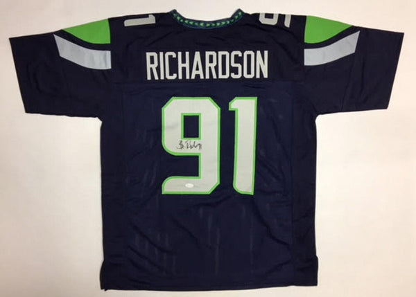 Custom On-field style jersey. Everything sewn on, size XL. Hand-signed in black felt-tip by Sheldon Richardson. The lot / autograph(s) includes an official James Spence Authentication (JSA) hologram and matching COA for authenticity purposes. The signing of this item was witnessed by JSA.Authentication: JSA COA