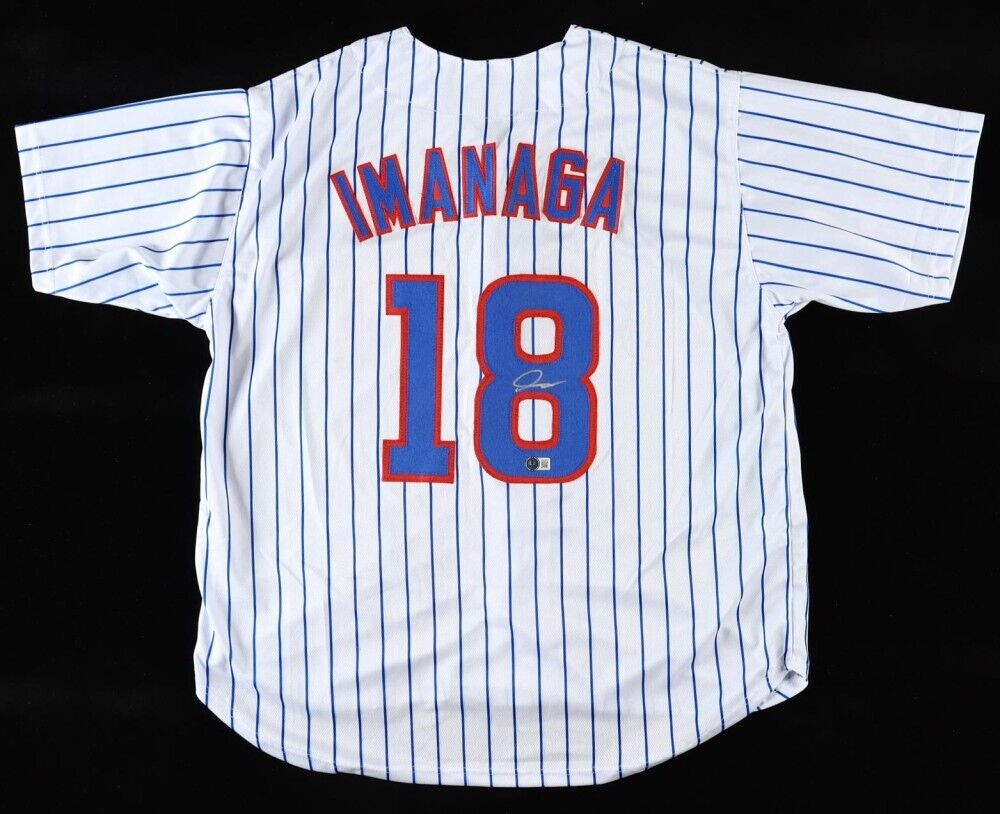 Custom on-field style jersey. Everything is sewn on, size XL. Hand-signed by Shota Imanaga.The autograph includes an official Beckett Authentication Services serially numbered hologram and QR Code Card for authenticity purposes. The signing of this item was witnessed by Beckett.Authentication: Beckett Hologram with QR Code Card
