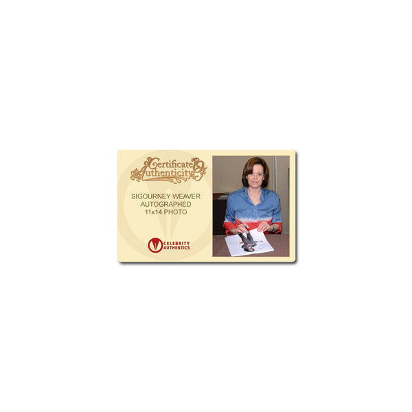 From the Framing Studios of Celebrity Authentics is this 11x"14" Framed Photo (approximately 18"x22" finished) of Ripley from Alien, personally hand-signed by Sigourney Weaver during her signing with Celebrity Authentics. Ships affixed with the Celebrity Authentics serial-numbered and tamper evident Authentication Hologram and includes Celebrity Authentics Certificate of Authenticity featuring picture of Sigourney signing photo. Please note, due to their packaging, to help ensure their safe delivery we are unable to combine framed photos with other items. Stock image used for product images. Item ships with clean, unsmudged autograph in similar location. Photo is meticulously dry mounted and framed using acid free backing and mat boards with white core for the finest in presentation. UV protective glass with precision cut moulding are used for smooth, clean frame edges, hand assembled in our studio. Additionally, a protective back cover is used to seal the piece with corner bumpers applied to protect your walls, providing adequate air flow. A hanger is affixed to complete the finished collectible. Each framed photo is carefully wrapped for shipping with double protective corners and cushioning to help ensure the item's safe arrival. Celebrity Authentics Framing Studios - acclaimed as the industry's finest! Please note: with multiples signed by the actor, a sample photo is used from stock to represent what you will receive. Exact autograph size and placement may vary.