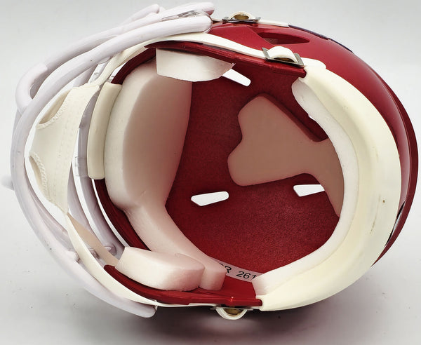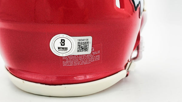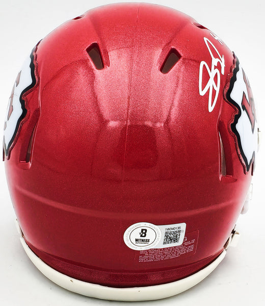 This is a Kansas City Chiefs Red Speed Mini Helmet that has been hand signed by Skyy Moore. This item was inscribed "SB LVII LVIII Champs." This item has been witnessed and certified authentic by Beckett Authentication (BAS) and comes with their tamper-proof witness sticker.