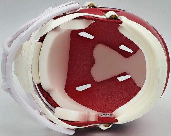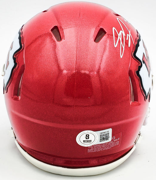 This is a Kansas City Chiefs Red Speed Mini Helmet that has been hand signed by Skyy Moore. This item was inscribed "SB LVII LVIII Champs." This item has been witnessed and certified authentic by Beckett Authentication (BAS) and comes with their tamper-proof witness sticker.