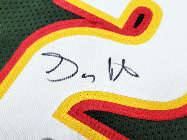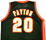 This is a Dark Green & Red Jersey that has been hand signed by Gary Payton. This is a custom jersey with no name brand. The approximate size is XL. It has nice sewn in name and numbers. This item has been certified authentic by Beckett Authentication (BAS) and comes with their tamper-proof QR Code sticker that can be verified on the Beckett-authentication.com.