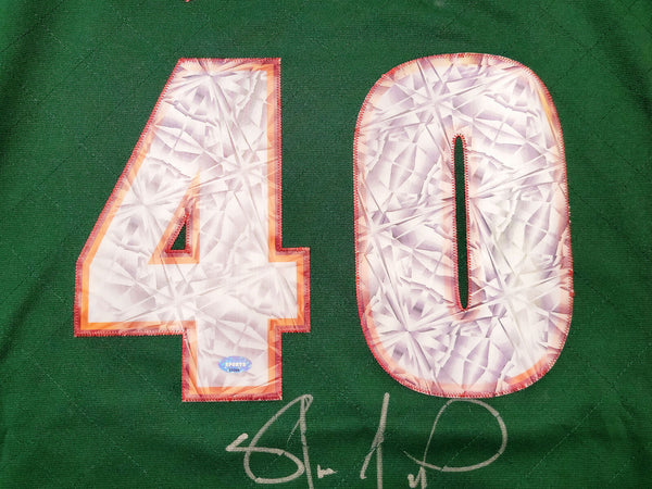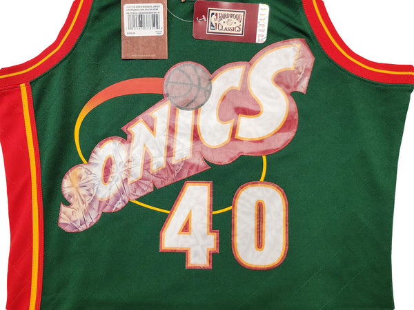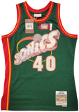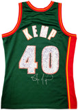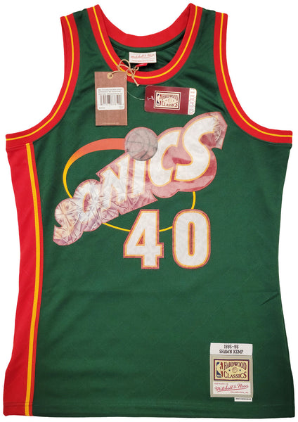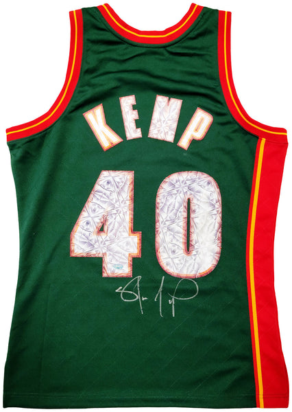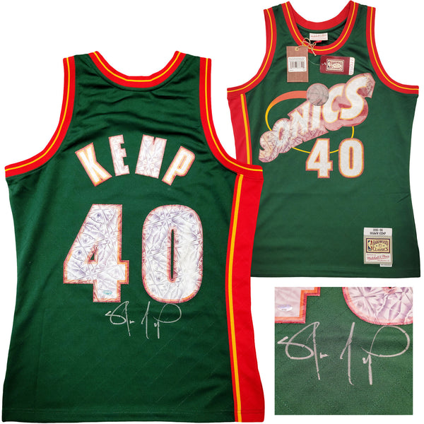 This is a Green Authentic Mitchell & Ness Seattle Supersonics Hardwood Classics Swingman Jersey that has been hand signed by Shawn Kemp. This is a limited time jersey that the NBA made for the NBA Top 75 event. This jersey is Size M. This item was signed in the presence of a Mill Creek Sports representative and comes with their serial numbered hologram and matching certificate of authenticity.