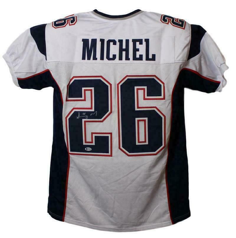 Sony Michel Autographed/Signed New England Patriots White XL Jersey BAS 22631 This is a custom size XL jersey with sewn on name and numbers that was personally signed by Sony Michel. This jersey includes a certificate of authenticity from Beckett Authentication Services (BAS) and Denver Autographs.