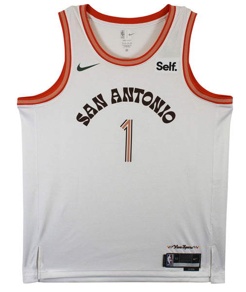 This Autographed White Nike City Edition Jersey has been Personally Signed by Victor Wembanyama of the San Antonio Spurs. This item is 100% Authentic to includes a numbered hologram by Fanatics. We have multiples of this same item. While the photographs are representative of this item, the size, placement and strength of the signature may vary. Each item is hand signed, therefore, each autograph is unique. Multiple sizes available. Reach out for availability.