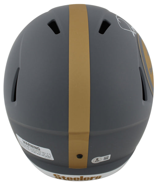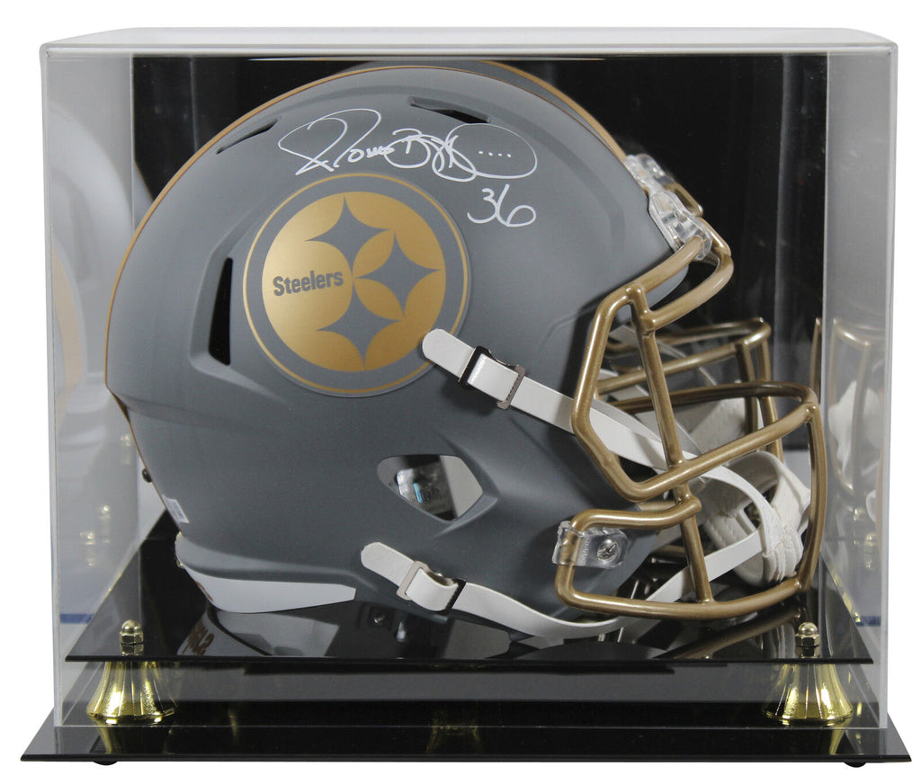 This Autographed Alternate Slate Riddell Full Size Speed Rep Helmet W/ Uv Mirrored Back Acrylic Display Case has been Personally Signed by Jerome Bettis of the Pittsburgh Steelers. This item is 100% Authentic to include a hologram by Beckett Authentication Services. This item will come with an affixed Beckett Authentication Services (BAS) authentication sticker, which includes a scannable QR code to verify authenticity. Please note that Beckett no longer provides serial-numbered COA cards, and the attached BAS sticker will serve as the complete authentication for this item. This is a BAS Witnessed Protection Program item which means a Beckett Authentication Service representative was present when this item was being signed. We conducted an autograph signing with Jerome Bettis where multiples of the same item were signed. While the photographs are representative of this item, the size, placement and strength of the signature may vary. Each item is hand signed, therefore, each autograph is unique. This item can be verified through BAS Witnessed.
