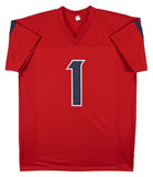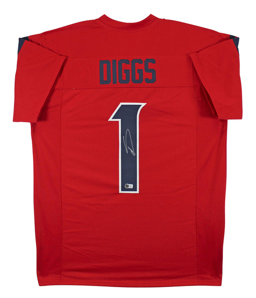 This Autographed Red Pro Style Jersey has been Personally Signed by Stefon Diggs of the Houston Texans. This item is 100% Authentic to include a hologram by Beckett Authentication Services. This item will come with an affixed Beckett Authentication Services (BAS) authentication sticker, which includes a scannable QR code to verify authenticity. Please note that Beckett no longer provides serial-numbered COA cards, and the attached BAS sticker will serve as the complete authentication for this item. This is a BAS Witnessed Protection Program item which means a Beckett Authentication Service representative was present when this item was being signed. We conducted an autograph signing with Stefon Diggs where multiples of the same item were signed. While the photographs are representative of this item, the size, placement and strength of the signature may vary. Each item is hand signed, therefore, each autograph is unique. This item can be verified through BAS Witnessed. This is a X-Large sized, non-branded, custom-stitched Jersey.