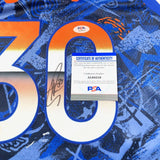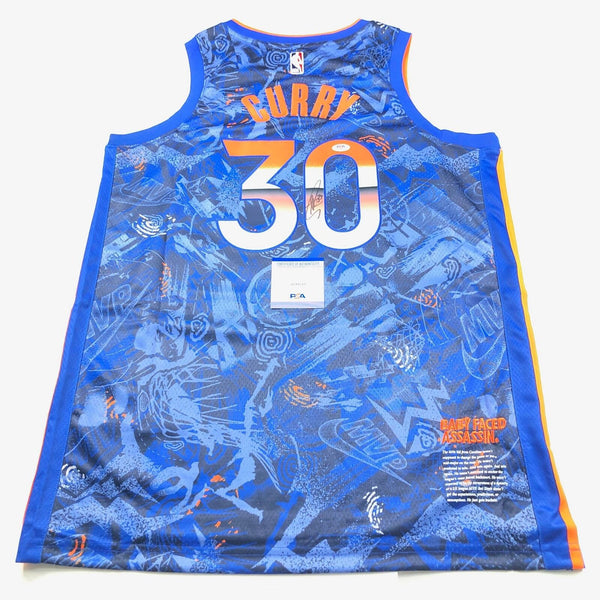 Autographed jersey by Stephen Curry of the Golden State Warriors. The autograph of Steph on this jersey was authenticated by a team of experts at PSA/DNA so you can rest assured you are purchasing the real deal.