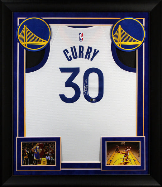This Autographed White Nike Association Edition Swingman Framed Jersey has been Personally Signed by Stephen Curry of the Golden State Warriors. This item is 100% Authentic to include a hologram by Beckett Authentication Services. This will come with the new scannable QR Code hologram which may not come with a matching numbered COA. We have multiples of this same item. While the photographs are representative of this item, the size, placement and strength of the signature may vary. Each item is hand signed, therefore, each autograph is unique. We have multiple sizes on this jersey, please reach out for sizing prior to purchase. This item has been professionally framed to overall dimensions of approximately 32 x 37 inches. This jersey will be framed to order, it will take 3-4 days from purchase date for it to ship.
