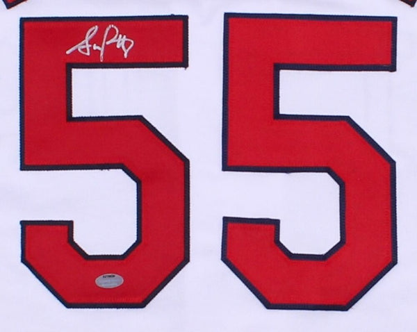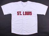 Custom on-field style jersey. Everything is sewn on, size XL. Hand-signed in silver paint pen by Stephen Piscotty. The autograph includes an official Schwartz Sports Hologram and matching COA for authenticity purposes.Authentication: Schwartz Sports COA