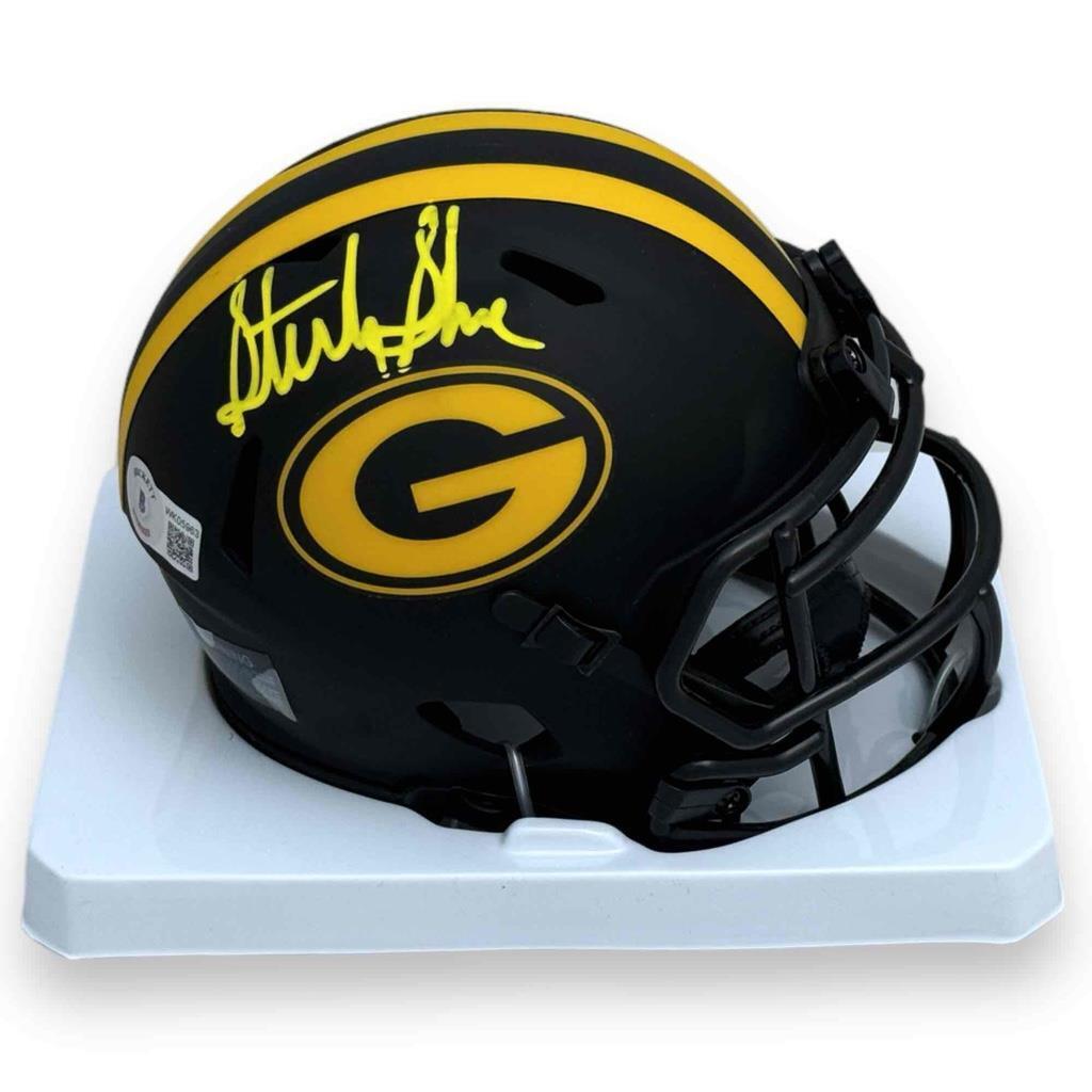 This signed item is brand new in box. This item will make a great gift or a great addition to any collection at an AFFORDABLE PRICE! ATHLETE: Sterling Sharpe ITEM: Green Bay Packers Eclipse Mini Helmet AUTHENTICATION: This item comes with a Beckett Authentication serial #'ed hologram affixed to the item. To ensure authenticity, the hologram can be reviewed online. This process helps to ensure that the product purchased is authentic and eliminates any possibility of duplication or fraud. This item was signed in the presence of a Beckett representative. *We do at times list a stock image of the product. This is done to expedite the listing process and only applies for merchandise that is comparably identical. While the photo(s) serve as a representation of the item, please be aware that variations may occur in the size, placement, and intensity of the signature. Since each item is hand-signed, every autograph is one-of-a-kind.