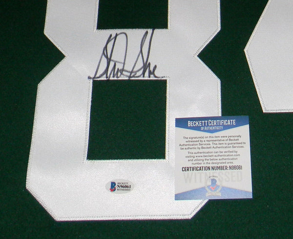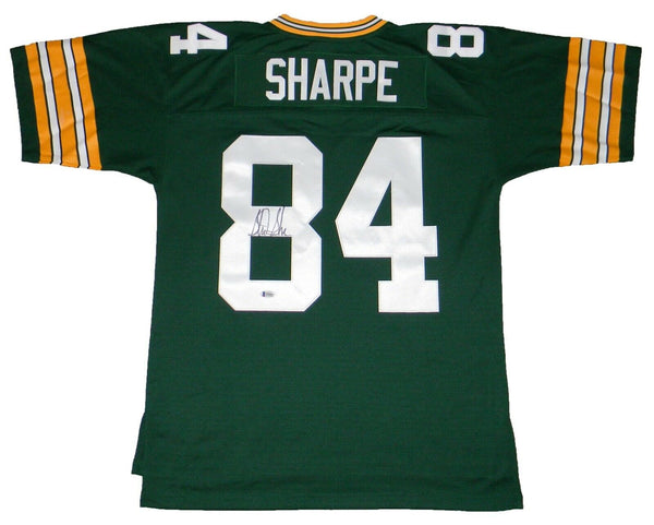 Sterling Sharpe, former All-Pro wide receiver for the Green Bay Packers, has hand signed this Mitchell & Ness jersey. Jersey is new with tags attached and all letters/numbers are sewn-on. This item comes with a certificate of authenticity (COA) from Beckett Authentication Services and was signed in the presence of one of their representatives. You will receive a serial-numbered COA along with a matching serial-numbered sticker on the jersey. The authenticity can be verified online by entering the serial number.Item pictured may not be the exact item you will receive. It will be similar quality, and we guarantee your satisfaction.