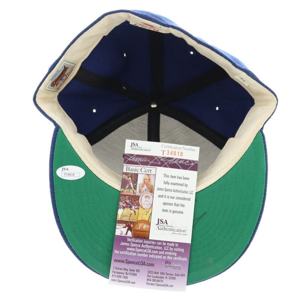 New Era Los Angeles Dodgers logo fitted hat, size 7 1/8, has been hand-signed by Steve Garvey. Please note the hat has some dirt stuck to it, see photos for details.The lot / autograph(s) includes an official James Spence Authentication (JSA) hologram and matching COA for authenticity purposes.Authentication: JSA COA