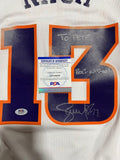 Stitched jersey autographed by Steve Nash who notably played for the Phoenix Suns. The autograph of Steve on this jersey was authenticated by a team of experts at PSA/DNA so you can rest assured you are purchasing the real deal. Should you have any questions or concerns or would like to make an offer please don't hesitate to contact us. We always take the time to respond to a message or an offer and we love to hear from our customers.