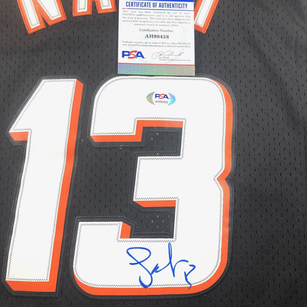 Jersey autographed by Steve Nash who notably played for the Phoenix Suns. The autograph of Steve on this jersey was authenticated by a team of experts at PSA/DNA so you can rest assured you are purchasing the real deal.