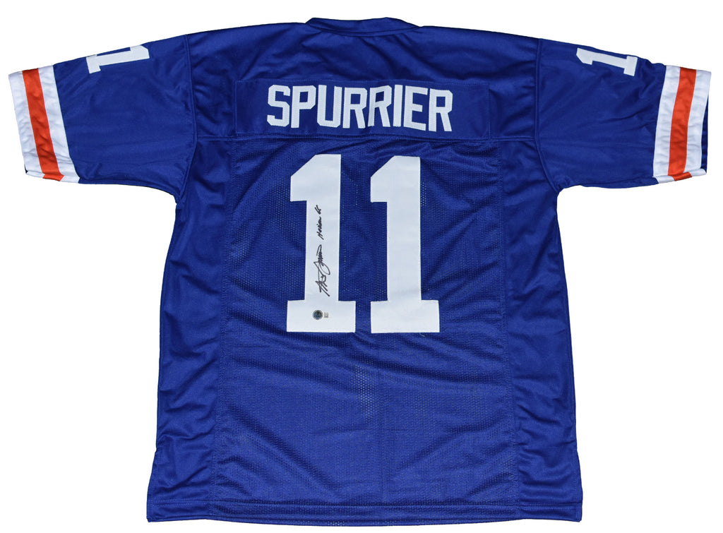 Steve Spurrier, former Heisman Trophy winning quarterback for the Florida Gators, has hand signed this custom jersey at a private signing. He included the inscription "Heisman 66" with his signature. Jersey is size XL and all letters/numbers are sewn-on. This item is authenticated by Beckett Authentication Services and was signed in the presence of one of their representatives. Their tamper-evident hologram featuring a QR code and serial number is on the item. The authenticity can be verified online by entering the serial number or scanning the QR code.Item pictured may not be the exact item you will receive. It will be similar quality, and we guarantee your satisfaction.